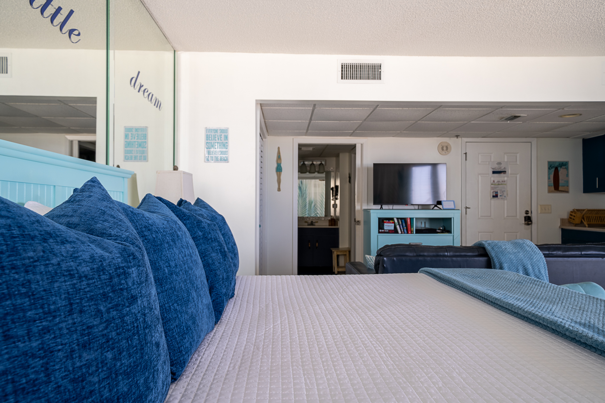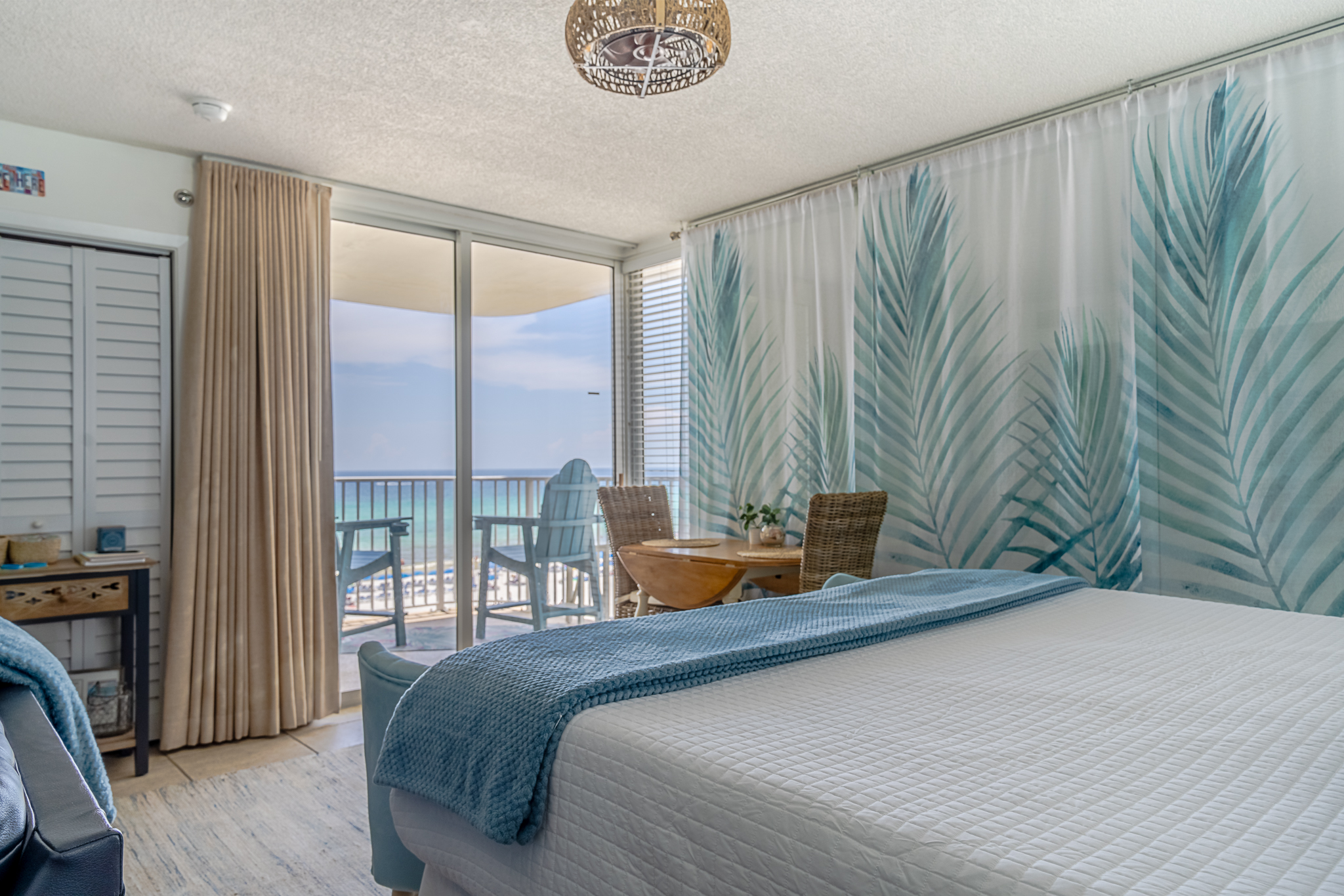 Nestled at the end tower in Long Beach Resort in Panama City Beach, you’ll enjoy a king-size bed, private balcony, kitchenette, and beach access just steps from your door.